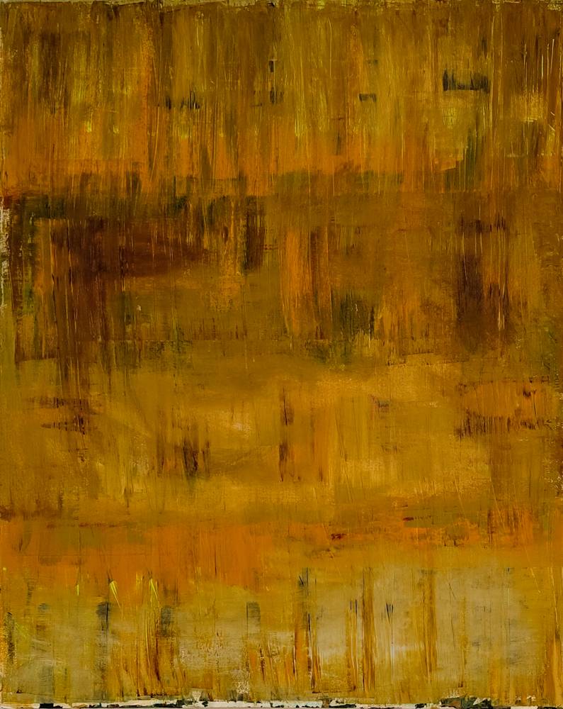 This piece is created in the Abstract style using oil paints on canvas. Multiple layers of golden, brown, and earthy colors, along with vertical strokes and scratched textures, depict a sense of depth and movement within the wheat field. The irregular and intertwined lines evoke a natural and organic feeling that contrasts and harmonizes with the soft texture of the field and the gentle movement of the wind. The technique used to create this piece involves a combination of hand-blending colors and using a palette knife, giving a lively and dynamic texture across the canvas. The lighter colors at the bottom and the vertical elements at the top suggest a sense of vastness and endless space, enriching the visual experience.