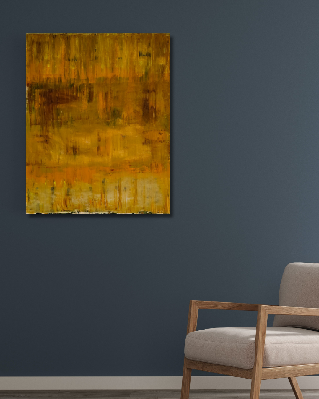 Amidst the golden and earthy hues, it’s as if a gentle breeze has passed through the wheat field, setting thousands of stalks into a delicate dance. The vertical and interwoven lines capture the whisper of the wind in an endless field, where each color murmurs a melody of nature. The radiant silence of the canvas reflects the warmth of the sun and the quiet life of the plains. This painting, like a tableau of the swaying dance of wheat in the embrace of the wind, tells a story of an eternal moment, conveying a sense of tranquility and timelessness to the viewer.