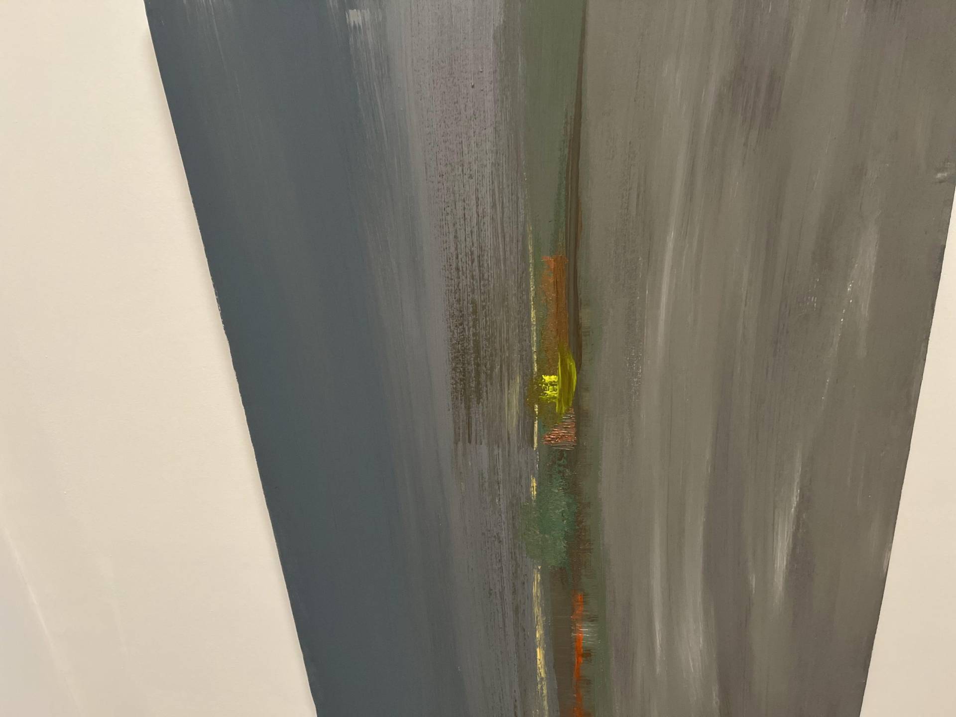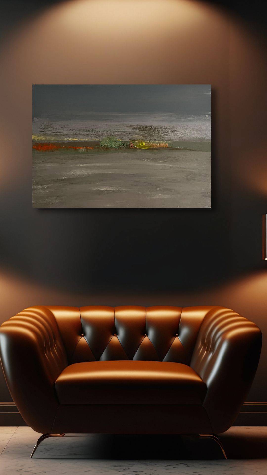 “Infinite Silence” employs the techniques of Abstract Expressionism, blending free brushwork, soft textures, and a careful interplay of light and shadow. The dominant gray tones create a profound sense of stillness and infinity, acting as a neutral backdrop that draws attention to the subtle yet impactful bursts of color.